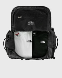 The Base Camp Duffel Bag from The North Face is made from water-repellent, recycled materials, is incredibly durable and particularly robust. Many well thought-out details make it particularly practical. - Detachable and adjustable shoulder straps for best carrying comfort without slipping - Two padded handles on the sides for comfortable carrying and uncomplicated roping - D-shaped lid flap with waterproof zipper cover - Main compartment with security zippered mesh pocket and mesh pocket on one side for better organization - Legendary indestructible construction made of water-repellent Base Camp material with additional latches and double stitching - Four compression straps - Waterproof ID window on top - Size: Size: 33.03cm x 53.34cm x 33.02cm - Volume: 50L This item is partly made of certified, recycled and sustainable materials, reducing the global amount of waste and conserving primary raw materials. Discover a wide range of sustainable items now at BSTN! Article Number: NF0A52ST53R1 Gender: Men, Women Color: TNF BLACK-TNF WHITE-NPF Material: 100% Poly Tarpaulin