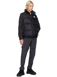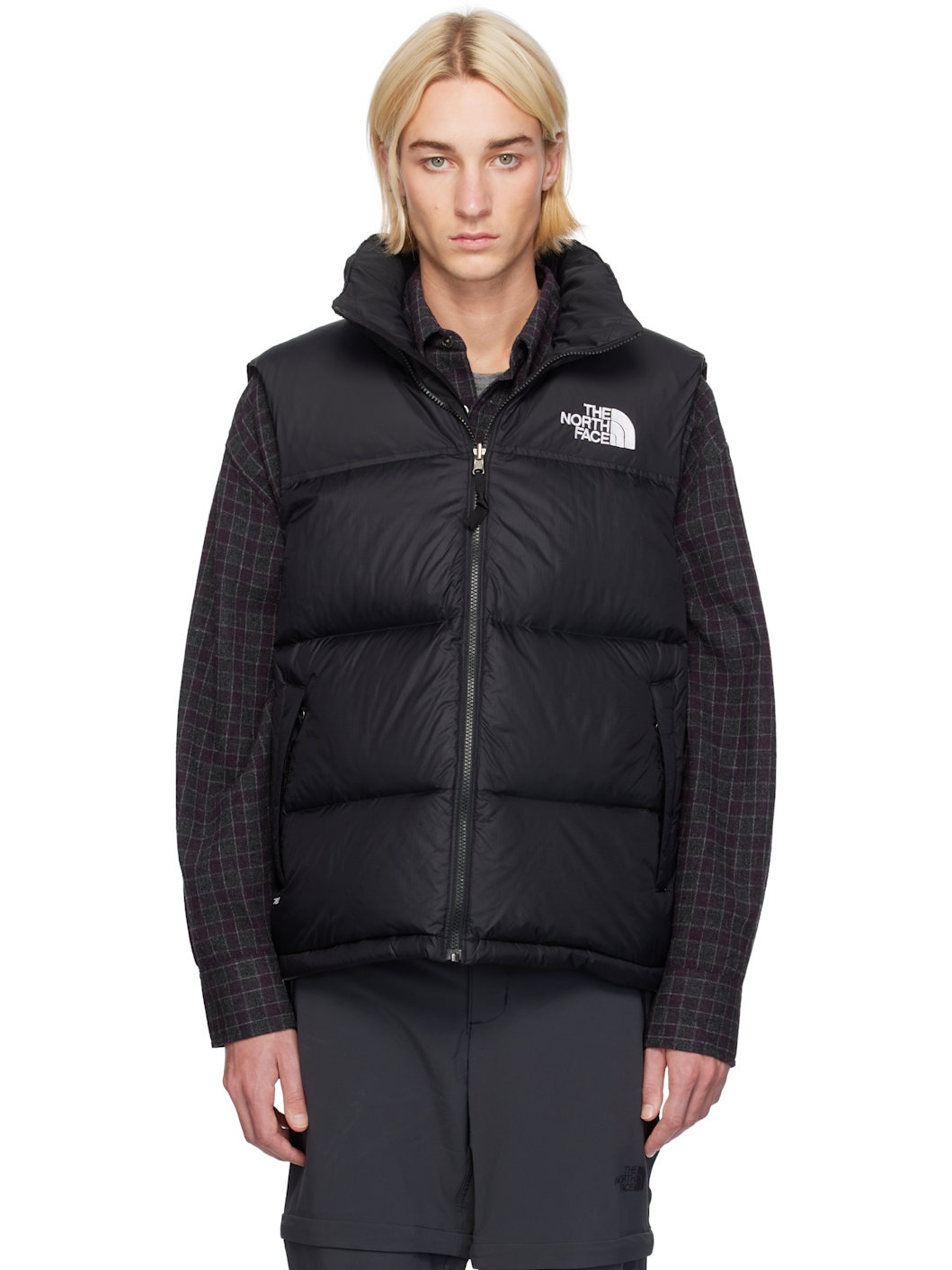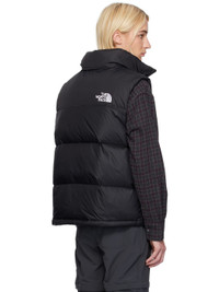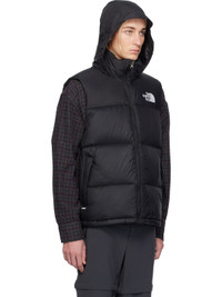 Down-filled and quilted recycled nylon ripstop vest. Packable, windproof, and non-PFC DWR-coated water-repellent. · RDS-certified down · Stowaway hood at funnel neck · VISLON® zip closure · Logo embroidered at chest and back · Zip pockets · Text embroidered at front · Concealed bungee-style drawstring at hem · Zip pocket at interior · Full nylon taffeta lining Supplier color: TNF black Fill: 80% recycled down, 20% recycled waterfowl feathers.