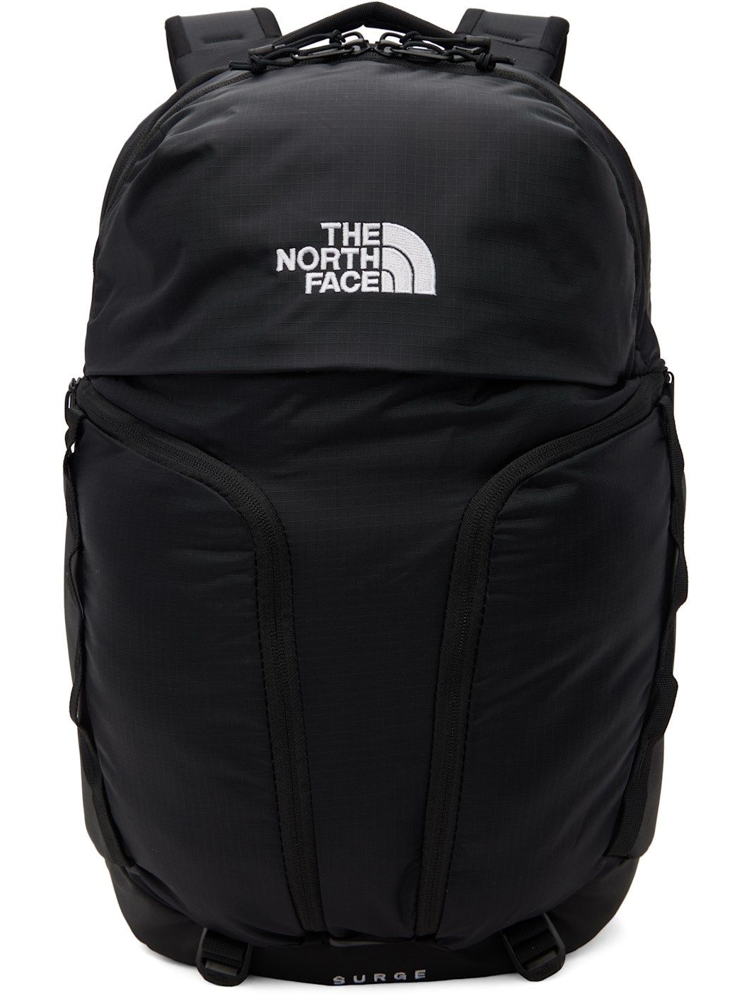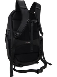 Recycled ripstop and canvas backpack in black. - Water-resistant, non-PFC DWR coating - Reflective trim throughout - Padded carry handle - Adjustable padded shoulder straps - Emergency whistle at sliding sternum strap - Press-release belt strap - Logo and text embroidered at face - Zip compartments - Daisy chain and patch pocket at sides - Padded and quilted FlexVent™ back face - Cinch straps at base - Two-way zip closure - Two-compartment interior - Zip pocket and patch pockets - Padded laptop compartment - H20 x W12 x D7 / 31 L Supplier color: TNF black/Black