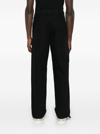 canvas trousers Highlights - Black - Concealed fly and button fastening - Belt loops - Classic five pockets - Side patch pocket Imported Composition Cotton 100% SIZE & FIT Model measurements Height 6 ft 0 in(1.84 m) Bust/Chest 37.79 in(96 cm) Hips 37 in(94 cm) Waist 31.49 in(80 cm) FittingInformation Designed for a tapered leg, offering a loose unrestricted fit over the leg with a closer fit towards the ankle Sturdy and hard-wearing, this denim piece offers no stretch