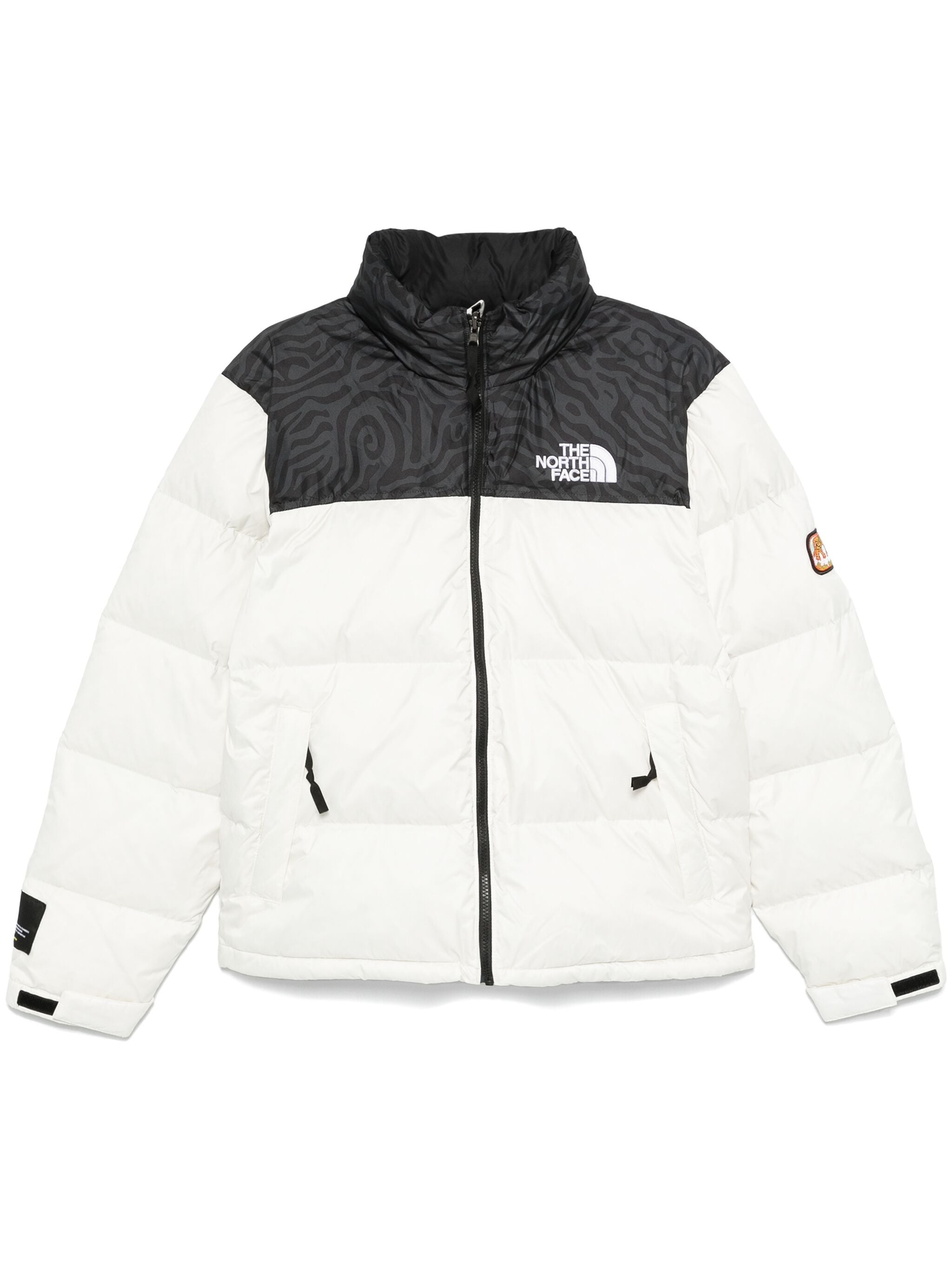 white/black shell ripstop texture padded design down-feather filling colour-block panelled design front zip fastening concealed hood stand-up collar long sleeves logo patch at the sleeve touch-strap cuffs embroidered logo at the chest two side zip-fastening pockets embroidered logo to the rear internal zip-fastening po - Color: WHITE - Made in: Bangladesh - Designer Style ID: NF0A3C8D5IX1 Composition and care Outer Composition Nylon: 100.0%, Lining Composition Polyester: 100.0%, Lining Composition Feather: 10.0%, Lining Composition Down: 90.0%