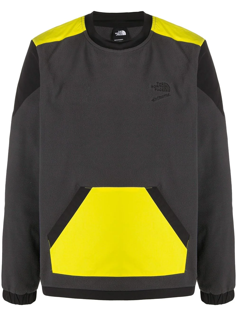 contrast panel sweatshirt Grey contrast panel sweatshirt from The North Face featuring a ribbed crew neck, an embroidered designer logo to the chest, kangaroo pockets, long sleeves, elasticated cuffs and a straight hem. Imported Composition Nylon 100%, Polyester 100% SIZE & FIT Model measurements Height 6 ft 2 in(1.89 m) Bust/Chest 37.79 in(96 cm) Hips 37 in(94 cm) Waist 29.92 in(76 cm) FittingInformation This piece fits true to size. We recommend you get your regular size Cut for a relaxed fit Made with a mid-weight fabric