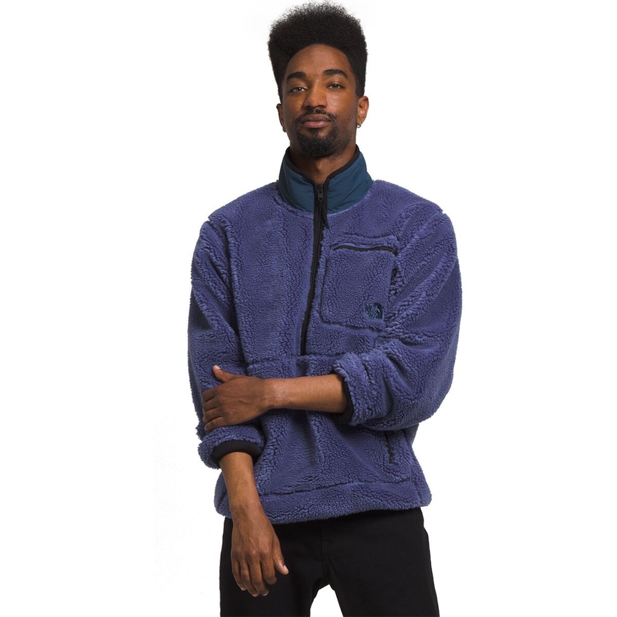 When cold winds threaten our hike or night in the woods we slip on The North Face Extreme Pile Pullover. This high pile fleece pulls moisture off of our skin while we move, traps heat when we hang out, and layers well if the skies open up. Details - Stylish fleece pullover designed for days spent outside - High pile fleece offers moisture control and a cozy feel - Half-zip allows you to control your personal climate - Raised collar blocks out cold winds and breathes well - Multitude of pockets keep important items secure - Item #TNFZC8T Tech Specs Material: [face fabric] 150D x 150D 70% recycled polyester, 30% polyester sherpa fleece, [lining] 100% recycled polyester, [collar] 100% nylon, non-PFC DWR treatment Fleece Weight: heavyweight (346gsm) Fit: regular Length: hip Center Back Length: 25.9in Hood: none Pockets: zippered kangaroo, zippered chest Activity: casual, hiking, camping Manufacturer Warranty: lifetime