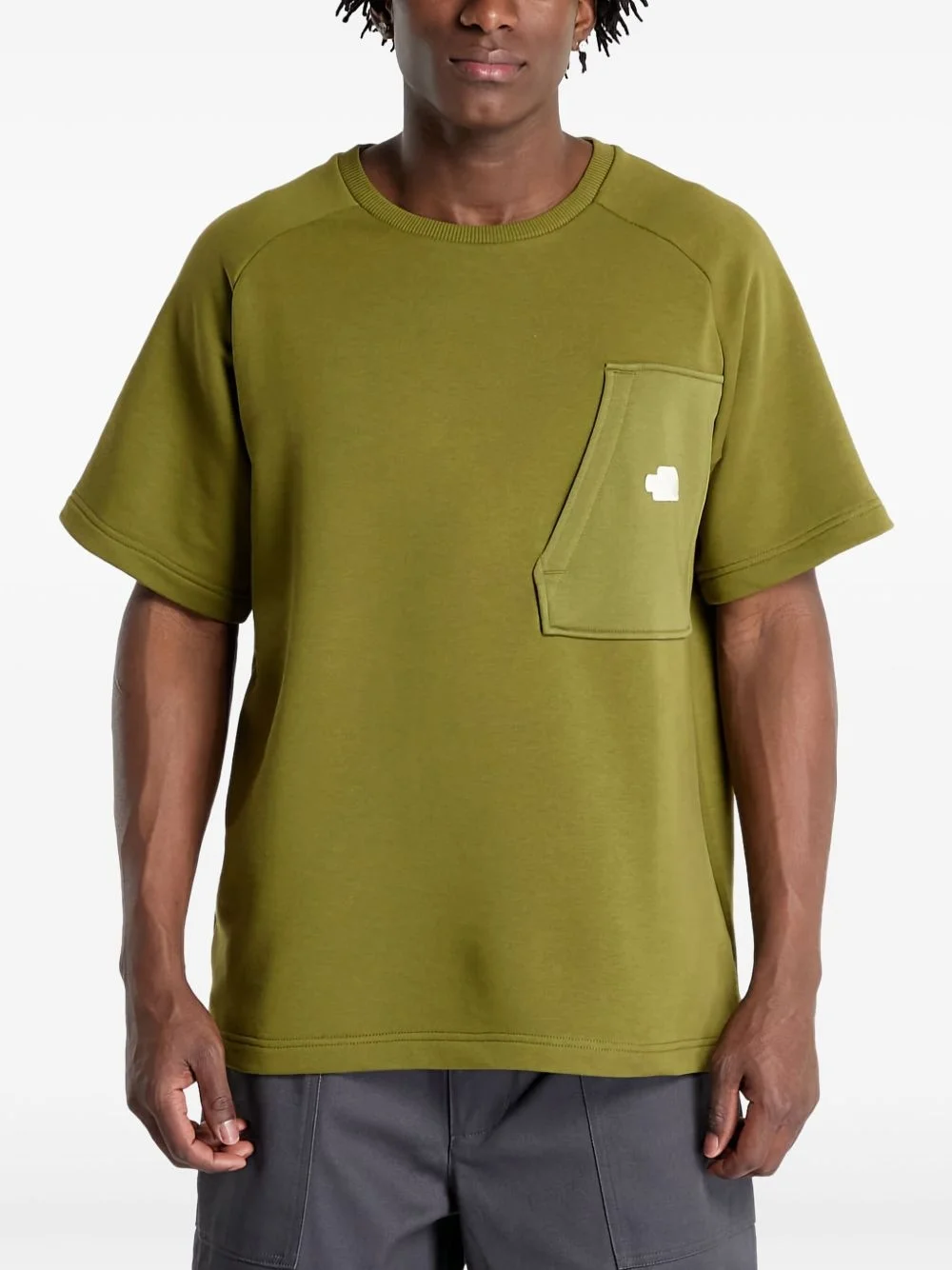 front-pocket T-shirt Highlights - Olive green - Crew neckline - Front patch pocket - Short sleeves - Tonal stitching Imported Composition Cotton 65%, Polyester 35%