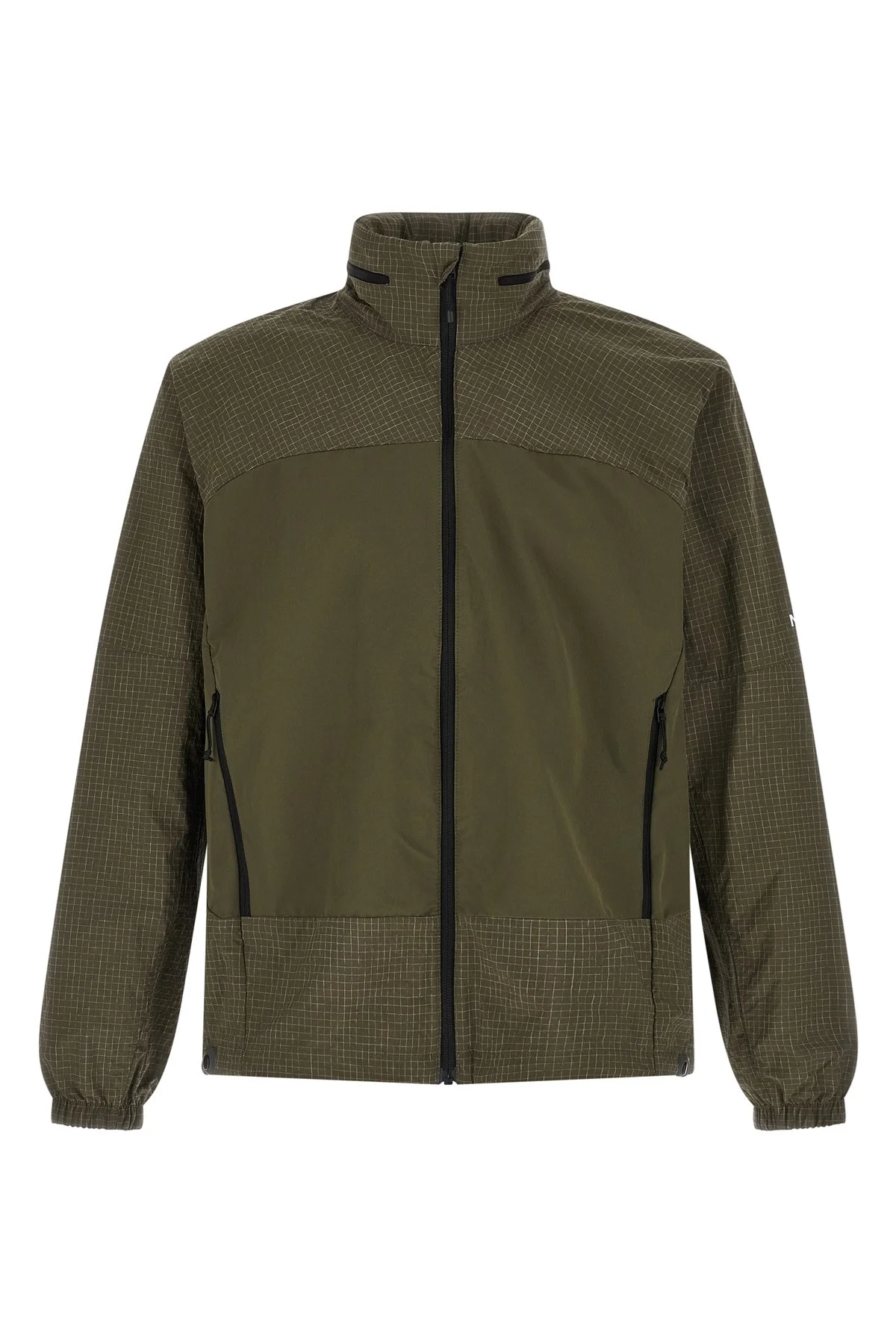 cod. NF0A8D2021L1 Hike Utility' windbreaker made in lightweight and breathable FlashDry™ fabric with DWR water-repellent technology and ripstop inserts, stand-up collar with removable hood, inner mesh inserts, logo print on the sleeves and back, front zip closure, pockets, long sleeves with elastic cuffs, drawstring on the hem. SUSTAINABLE: Product made with recycled materials. Color: Green Size & Fit: true to size fit Composition: 94% nylon, 6% elastane Made in: Indonesia