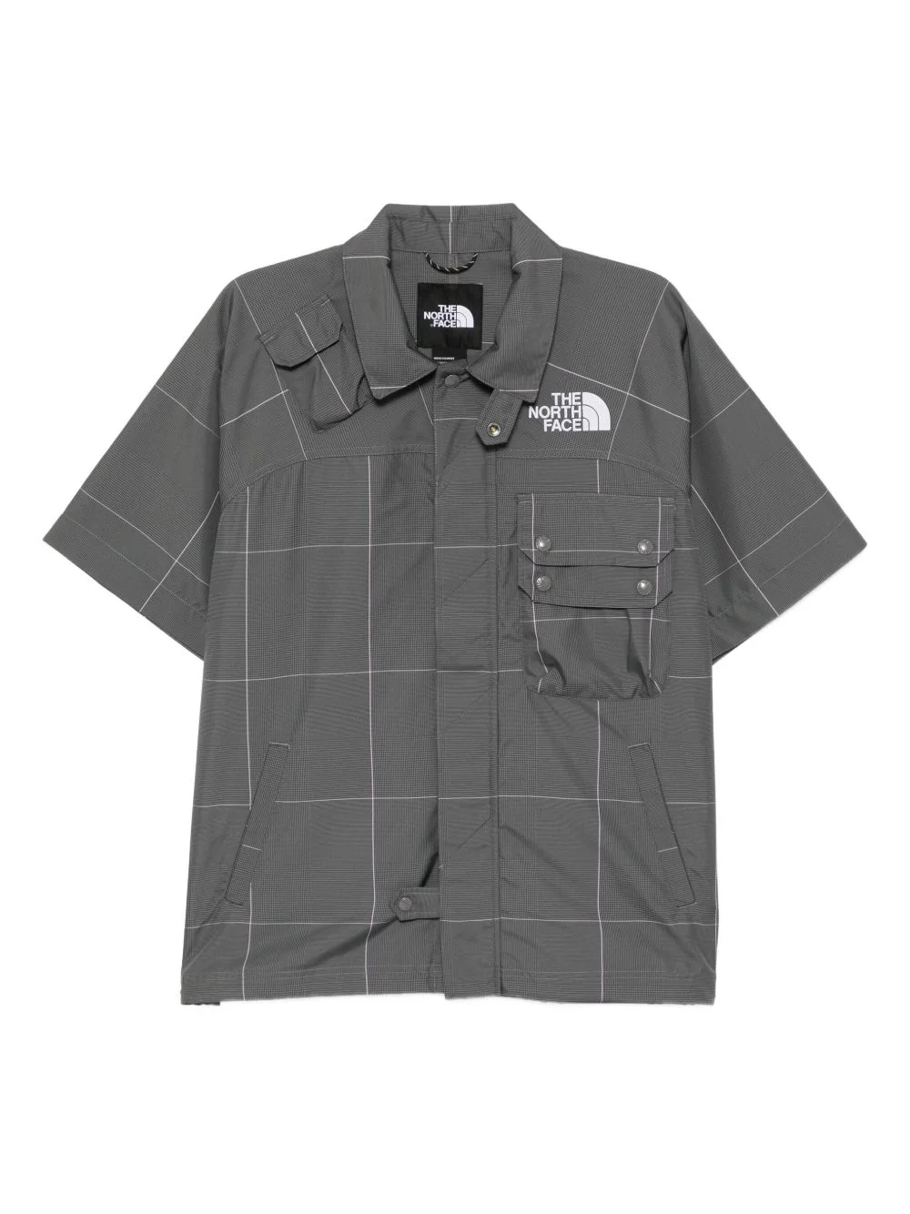 logo-embroidered shirt Highlights - Charcoal grey - Concealed press-stud fastening - Chest flap pocket - Short sleeves - Two front slash pockets Imported Composition Polyester 100% Washing instructions Machine Wash