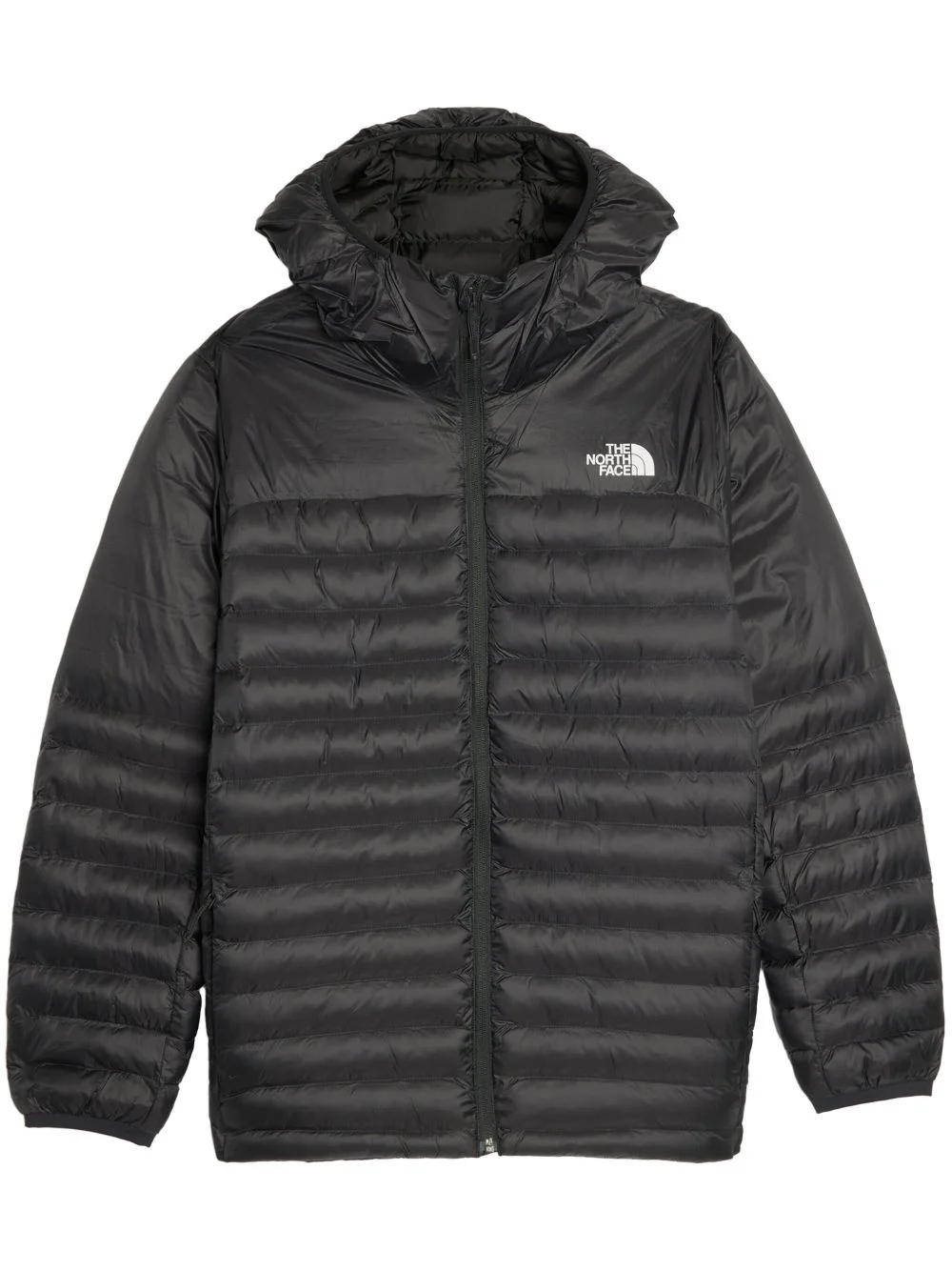 logo-print padded jacket Highlights - Black - Front zip fastening - Two side slit pockets - Slouchy hood - Long sleeves Imported Composition Lining: Recycled Polyester 100% Outer: Recycled Nylon 100% SIZE & FIT Measurement CHEST 42.51 in(108 cm) SLEEVE LENGTH 24.01 in(61 cm) Shoulder Width 16.53 in(42 cm)