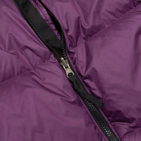 - NF0A3C8D V6V1 - Black Current Purple/TNF Black - 100% Recycled Nylon Ripstop - Fill: 700 goose down - Front zip closure - Stand up collar - Packable three-piece hood - Embroidered branding on left chest - Two side pockets with zip closure - Adjustable velcro cuff tabs - Adjustable drawstring at the hem - Relaxed fit