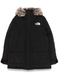 black recycled down-feather filling padded design front zip and touch-strap fastening waterproof wind-resistant faux fur-trimmed hood long sleeves touch-strap cuffs embroidered logo at the chest two zip-fastening chest pockets two side flap pockets embroidered logo to the rear quilted lining straight hem We've partnered with Good On You — an independent agency that rates how brands perform in relation to their impact on the planet, people and animals, with a multi-criteria rating simplified to a five points scale. In order to be awarded our conscious label, larger brands need to score a minimum of four out of five ('Good'), while smaller brands must score at least three out of five ('It's A Start'). This item comes from a brand rated three out of five ('It's A Start') by Good on You at the time it was added on FARFETCH. Please note, this is a brand-level rating and does not guarantee that this product is made with conscious materials. Learn more about what makes a product Conscious on our Conscious Criteria page Size & Fit Model Measurements: Height: 1.86 m Bust/Chest: 92.0 cm Hips: 96.0 cm Waist: 78.0 cm Model wears size L Fabric and Care Designer Style ID: NF0A5GJF4H0 Designer Colour: TNF BLACK - NPF Composition: Outer: Polyurethane 100%, Acrylic 70%, Polyester 17%, Nylon 100%, Modacrylic 13%; Lining: Polyester 100%, Recycled down 80% Washing instructions: Machine Wash Made in Indonesia