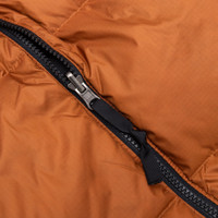 - NF0A3C8DC791 - Burnt Umber/TNF Black - 100% Recycled Nylon Ripstop - Fill: 700 Goose down - Water-repellant - Front zip closure - Packable three-piece hood - Two side welted pockets - Embroidered branding on the chest and back - Adjustable velcro cuff tabs - Adjustable drawcord at the hem - Stand-up collar - Relaxed fit