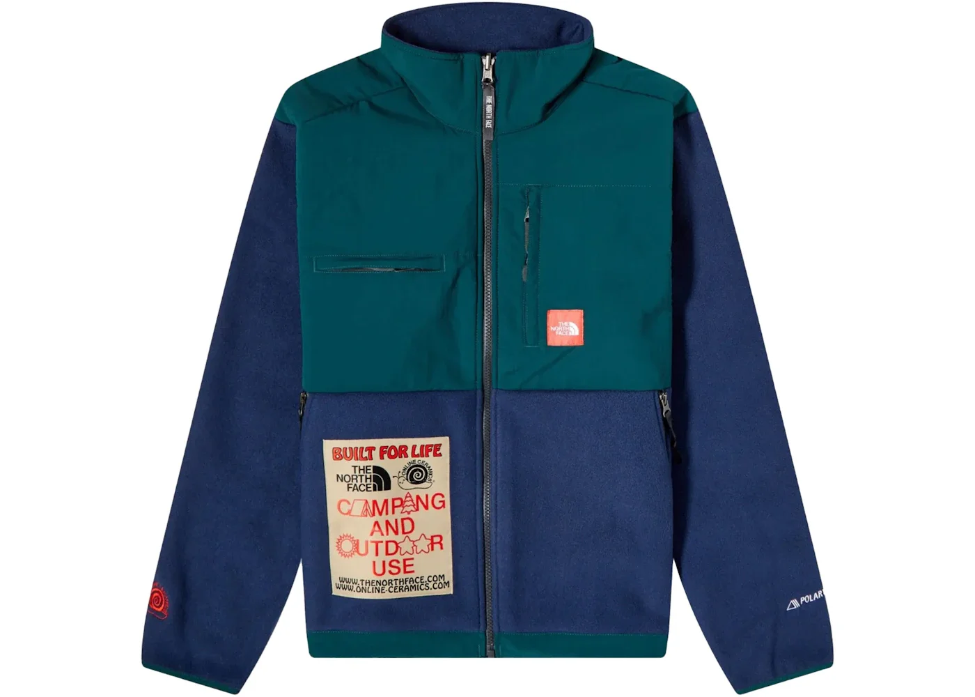 The North Face x Online Ceramics 1995 Polartec Denali Summit Navy/Green is a relaxed fit, hip-length jacket with a water-repellent overlay in Green over soft, 100% recycled Polartec fleece in Summit Navy. There are two front chest pockets with zippers. The North Face and Online Ceramics branding appears on the left chest, sleeves, and collar and as a large patch on the lower right front. The North Face has celebrated camping since its founding in 1966. Online Ceramics is a Los Angeles-based brand whose graphic tees celebrate eco-friendly activities. With the 1995 Polartec Denali jacket, the two brands collaborated to channel the spirit of the camping legacy with outdoor products that blend The North Face’s performance gear with Online Ceramics’ creative direction. Our experts feel that the best feature of The North Face x Online Ceramics 1995 Polartec Denali Summit Navy/Green is the expressive, collaborative branding. The North Face x Online Ceramics 1995 Polartec Denali Summit Navy/Green was released on June 23, 2023, and retailed at $289. - Season SS23 - Color Summit Navy/Green - Release Date 2023-06-23 - Retail Price 289 - Featured false - Uploaded By LL