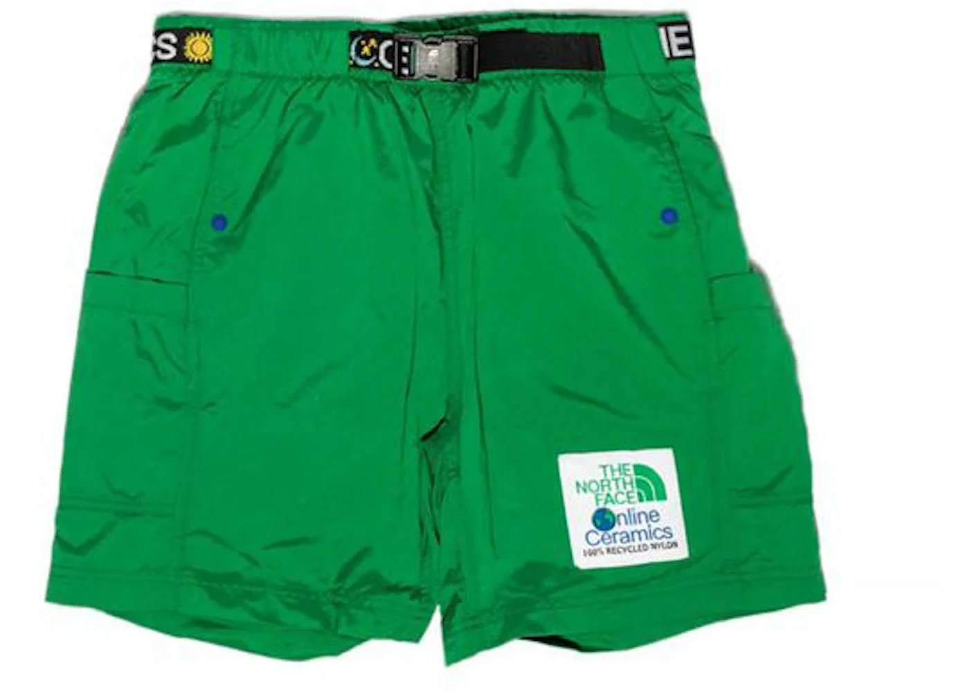 The North Face x Online Ceramics Cargo Shorts Green was released in April of 2022 as a part of the pair’s Earth Day-focused collaboration. These shorts are made from a 100% recycled 40D piece dyed nylon woven material. They feature a The North Face x Online Ceramics co-branded patch logo on the left leg and a sun & moon webbing belt. These The North Face x Online Ceramics Cargo Shorts in green released at the retail price of $130. - Season SS22 - Color Green - Release Date 2022-04-29 - Style TNF-238 - Retail Price 145 - Featured false