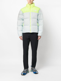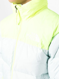 two-tone logo-print puffer jacket Highlights - Light blue/fluorescent yellow - Feather down - Padded design - Quilted - Logo print at the chest - High neck - Front zip fastening - Long sleeves - Two zip-fastening pockets - Straight hem - We've partnered with good on you — an independent agency that rates how brands perform in relation to their impact on the planet, people and animals, with a multi-criteria rating simplified to a five points scale. in order to be awarded our conscious label, larger brands need to score a minimum of four out of five ('good'), while smaller brands must score at least three out of five ('it's a start'). - This item comes from a brand rated four out of five ('good') by good on you. please note, this is a brand-level rating and does not guarantee that this product is made with conscious materials. - Learn more about what makes a product conscious on our conscious criteria page Imported Composition Lining: Feather Down 100%, Nylon 100% Outer: Nylon 100% SIZE & FIT Model measurements Height 6 ft 1 in(1.86 m) Bust/Chest 36.61 in(93 cm) Hips 37 in(94 cm) Waist 28.74 in(73 cm) FittingInformation Designed for a relaxed fit, this piece allows for comfort and movement when worn Made from a midweight non-stretch fabric This piece fits true to size – take your usual size