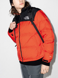 two-tone padded jacket We all need to have priorities when it's cold. Ours is throwing on this two-tone padded jacket from The North Face before leaving the house so our body temperature doesn't get upset with us. Now our odds are looking rather good. Imported Composition Lining: Feather Down 100%, Nylon 100% Outer: Nylon 100% SIZE & FIT Model measurements Height 6 ft 2 in(1.89 m) Bust/Chest 35.82 in(91 cm) Hips 39.37 in(100 cm) Waist 31.1 in(79 cm) Washing instructions Machine Wash
