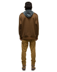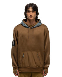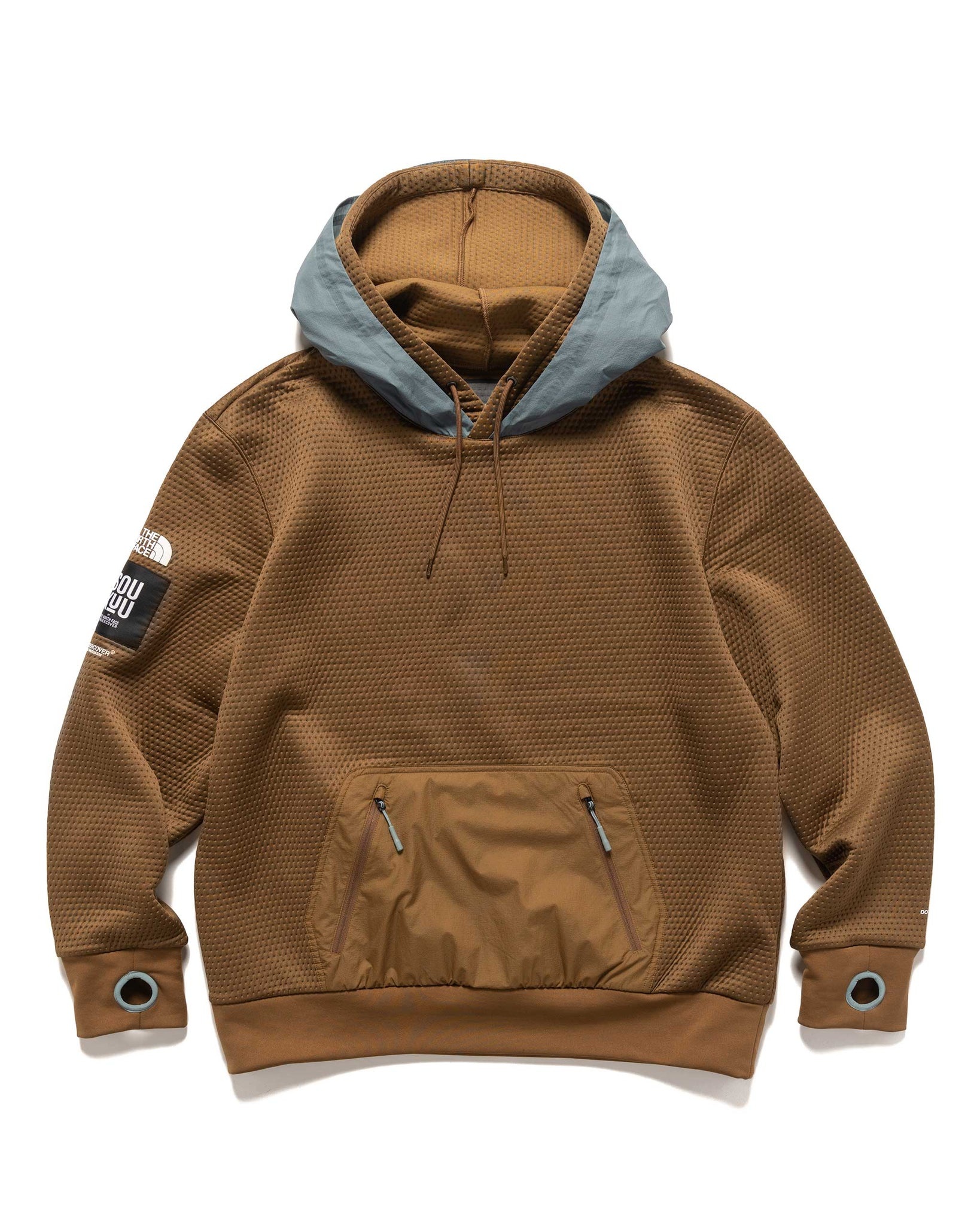 'SOUKUU' is the new collaborative effort between Undercover and The North Face, aimed at reinterpreting classic silhouettes to provide a fresh perspective on outdoor performance wear that blends effortlessly among urban and natural environments. Utilizing DotKnit technology, a double knit performance fabric with high breathability and wicking capability that is only matched by it's comfortable texture, the futuristic hooded sweatshirt is exceptionally performance ready. A zip fastened kangaroo pocket offers secure storage of small goods, while an adjustable drawstring nylon hood offers further weather protection. Finished with branding details throughout, the end result is a ultimately versatile and eye-catching garment blending key elements and aesthetics of both brands. DETAILS - A84SB - Main: 100% Polyester, Contrast: 100% Nylon - Breathable and lightweight - Contrast nylon adjustable hood - Nylon panelled kangaroo pocket with zipper entry - Ribbed cuffs with thumbhole detail - Branded details on left sleeve - Made in Vietnam