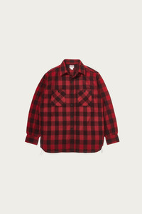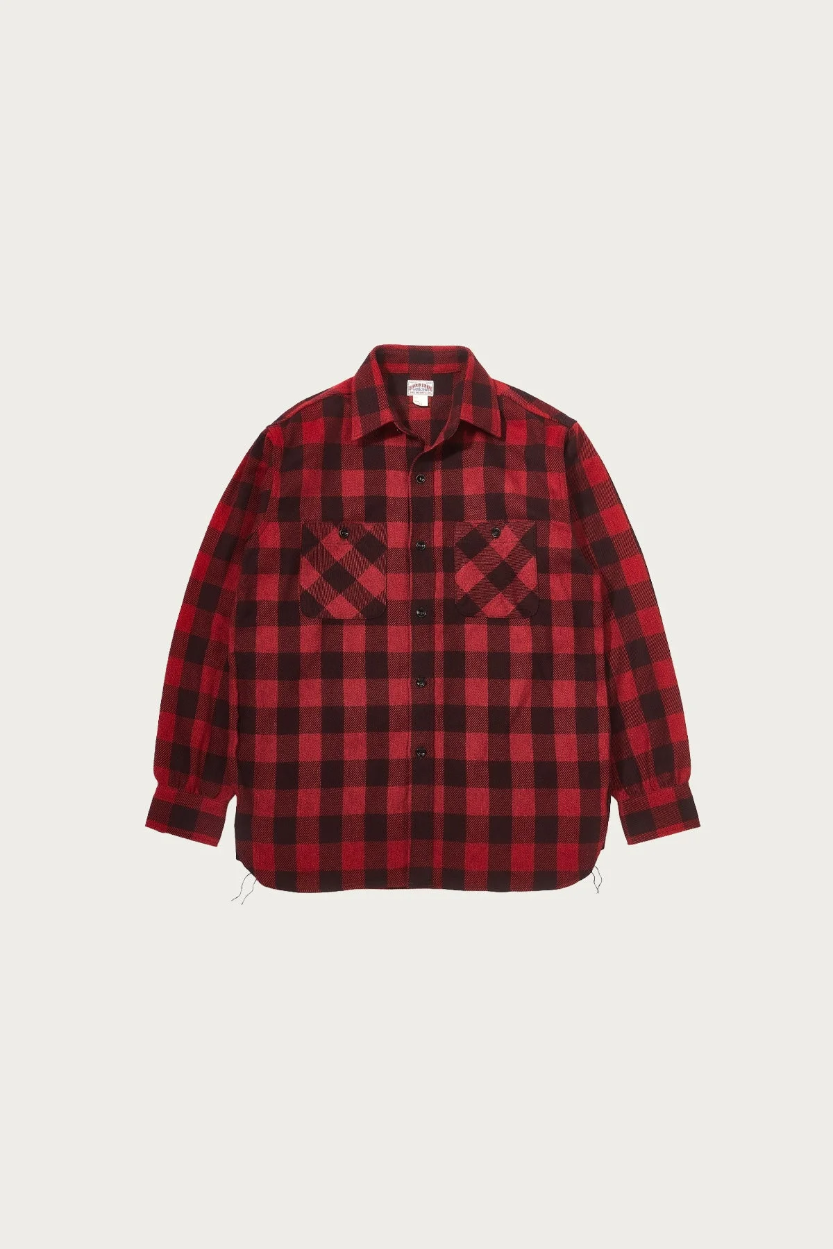This flannel shirt channels the grit and presence of mid-century workwear through modern craftsmanship. The 8HU Buffalo Check is woven from twisted-yarn flannel made on vintage looms, giving the surface a rich texture and tonal variation that reads deeper than a flat check. It’s built true to vintage fit, so the proportions are rugged yet balanced. Black natural nut buttons add a subdued contrast, and details like reinforced buttonholes and careful seam construction underscore its meant-to-wear authenticity. - Yarn Dyed Twisted Flannel Fabric - 100% Cotton - Symmetrical Buttoned Chest Pockets - Natural Nut Button - Cotton Sewing Thread Construction - Made in Japan - Red/Black
