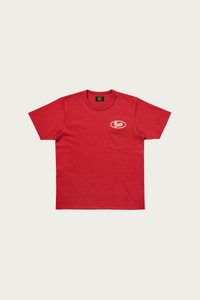 Part archive tribute, part everyday staple, the BUCO Tee carries vintage motorcycle culture into modern wear. Built from an 8 oz cotton jersey body with a binder neck to lock in shape, it wears with substance and durability. The chest pocket and bold BUCO oval and “Enthusiast” helmet graphics (front and back) are hand-applied in rubber print at The Real McCoy’s Kobe workshop, giving each shirt character right out of the box. Cut in a boxy 1950s silhouette, the tee balances archival spirit with daily versatility. - 8oz Cotton - Binder neck - Red