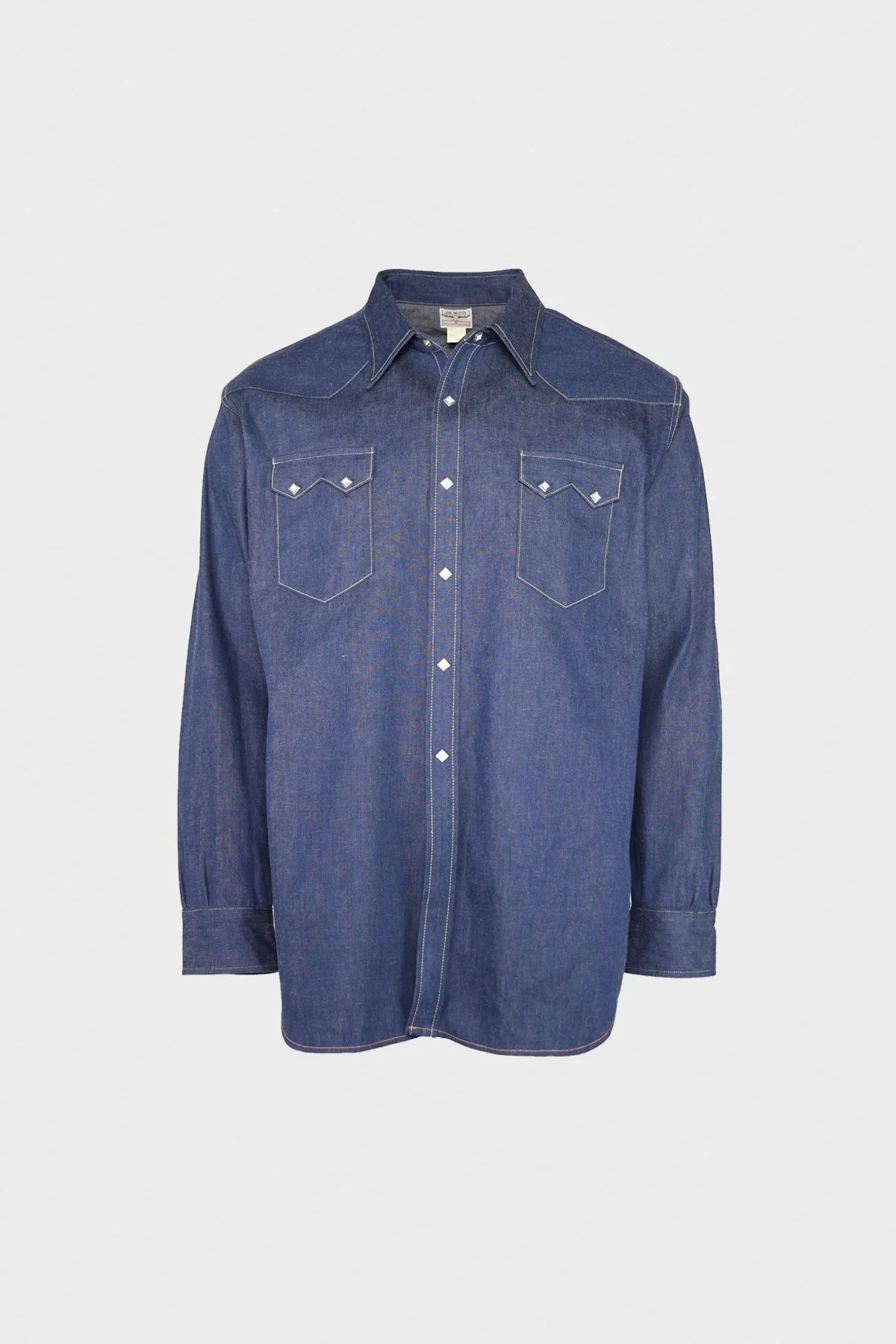Commonly known as the "Sawtooth Western Shirt", referring to its sharp double pointed flap pockets. This Denim Western Shirt from Joe McCoy is a reproduction of an example from the 1960s. This denim fabric has been specially woven, by layering lighter colors to achieve a pale indigo which is true to the 1960s. Fits true to size. - Sawtooth Pocket Design - Snap Buttons - Made in Japan