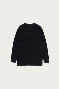 The Waffle Thermal Henley is a vintage-inspired essential reworked for today’s layering needs. Knit from cotton in a waffle-thermal pattern, it lives up to its utility roots with texture that traps warmth without bulk. The contrast two-tone placket and overlocked stitching give it a crafted sense of detail, while the urea “cat’s eye” buttons nod to midcentury workwear styling. Classified as a “BALLPARK” piece, it’s built with heritage spirit, echoing how henleys evolved from rowing shirts to factory wear, while keeping the modern sensibility of The Real McCoy’s build standards. - 100% Cotton - Three urea cat's eye buttons - White cotton button placket - Cotton Sewing Thread Construction - Made in Japan - Black