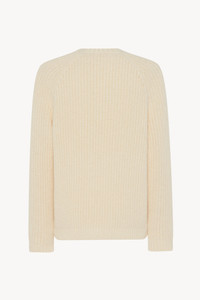Long-sleeved crewneck sweater in textured mohair and silk knit with raglan sleeves, ribbed neckline, cuffs, and hem, and relaxed fit. More information - 60% Mohair, 40% Silk - Made in Italy - Style: 845Y900IVR