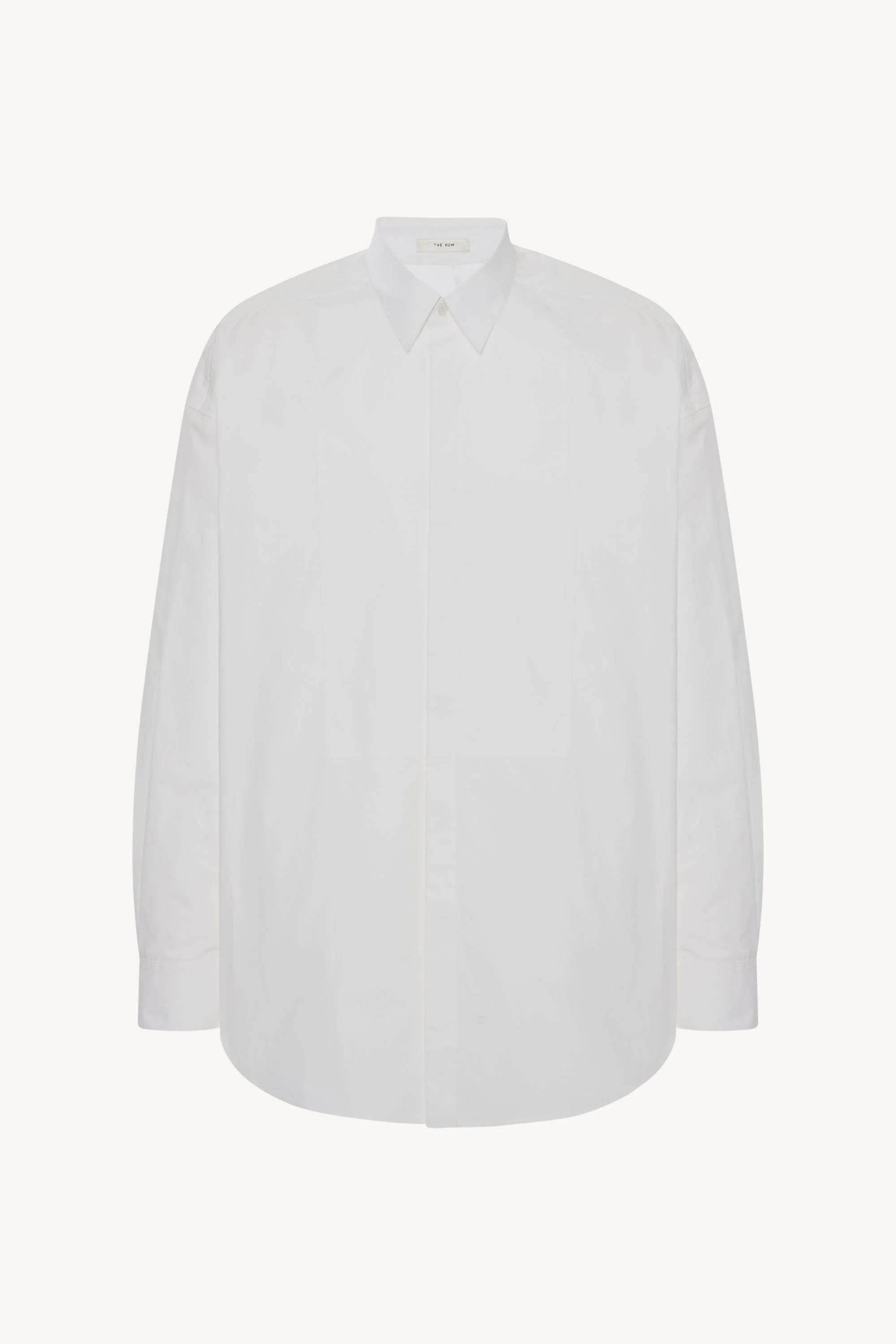 Minimal button-up shirt in structured cotton poplin with relaxed fit, front plastron, and concealed front placket with mother-of-pearl buttons. More information - 100% Cotton - Made in Italy - Style: 924W2479WHT