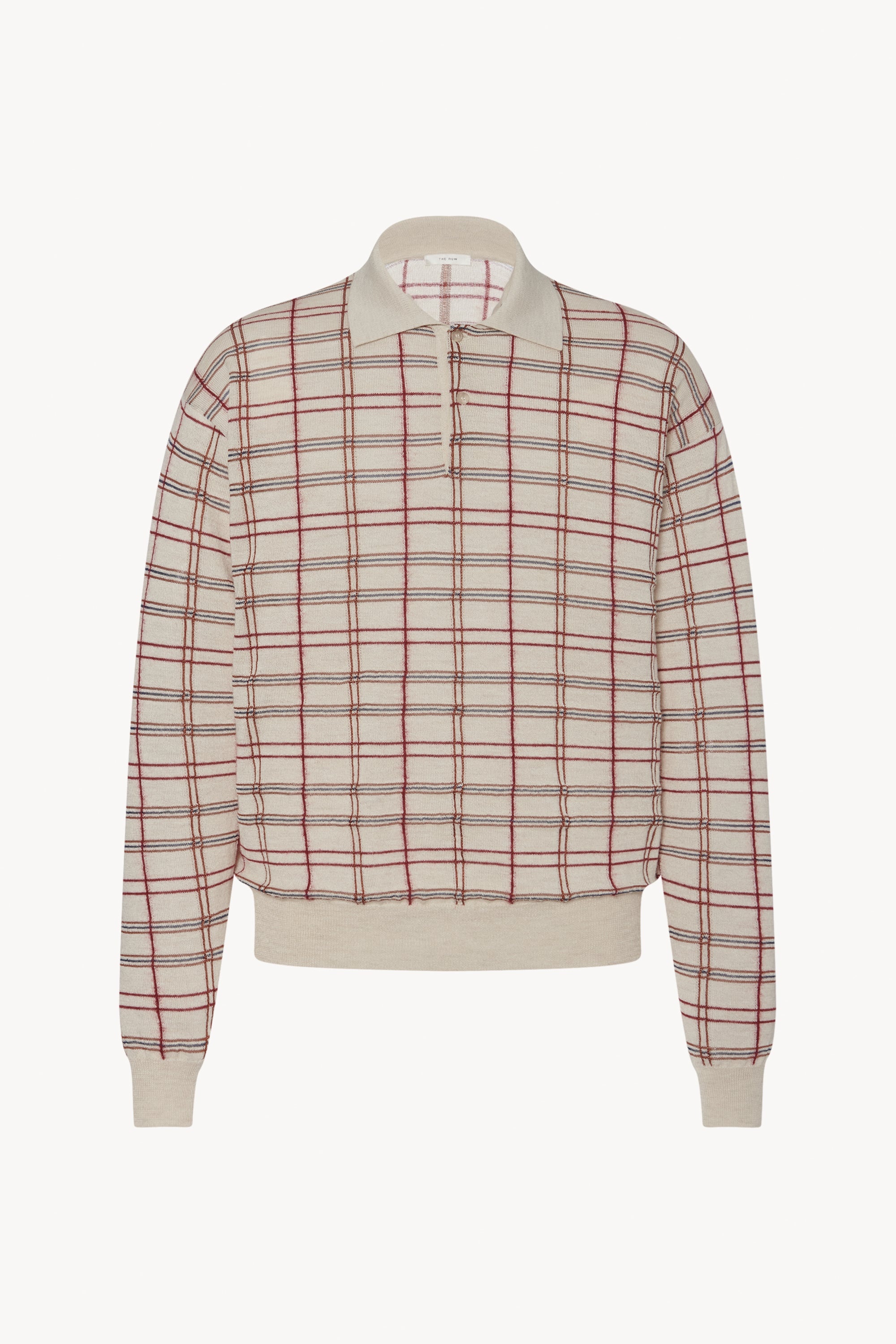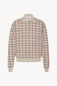 Long-sleeved polo in soft llama silk with 2-button collar, straight fit, and contrast tartan pattern. More information - 59% Llama, 34% Silk, 3% Mohair, 2% Alpaca, 2% Polyamide - Made in Italy - Style: 650Y743AGD