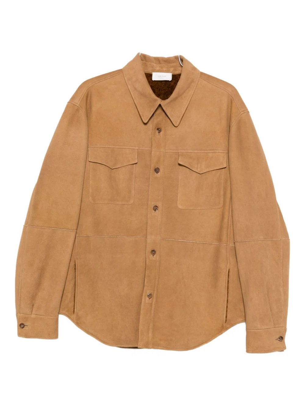 button-down flap-pocket shirt jacket Highlights - Sand - Button fastening - Polo collar - Chest flap pockets - Long sleeves Imported Composition Calf Suede 100%