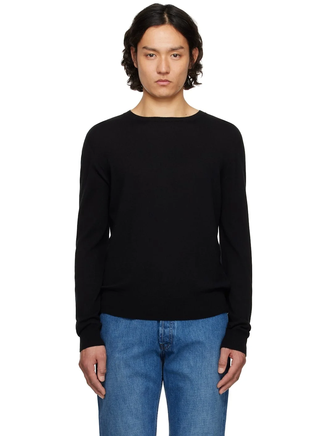 Knit cashmere sweater. - Rib-knit crewneck, hem, and cuffs - Central garter-stitch stripe at back Supplier color: Black