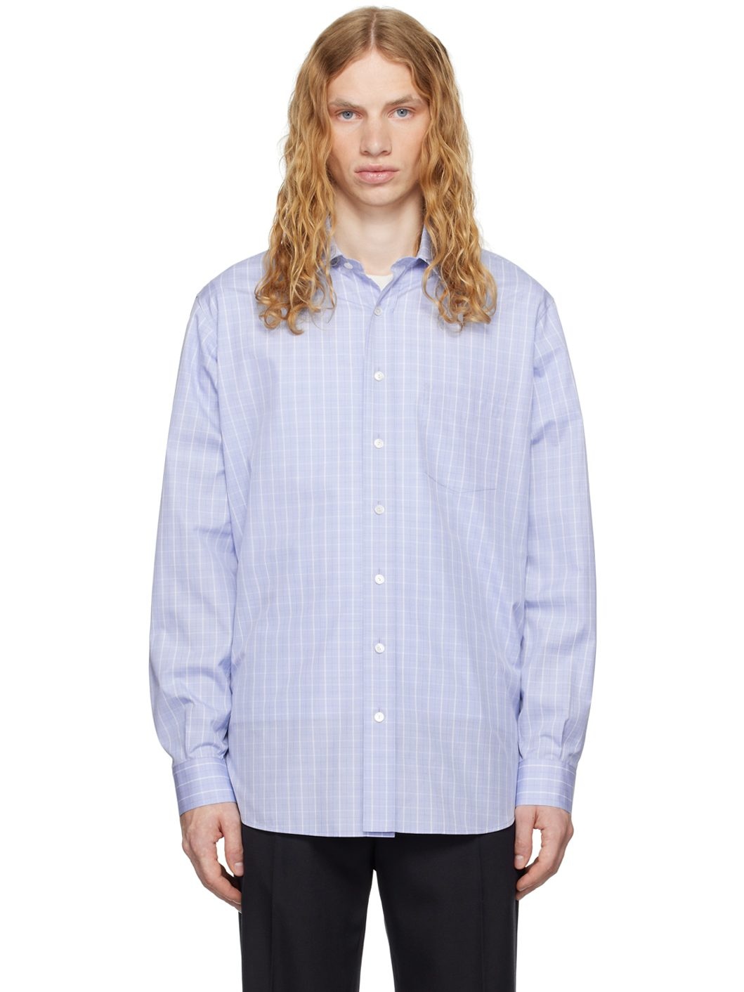 Cotton poplin shirt. Check pattern throughout. · Spread collar · Button closure · Patch pocket · Shirttail hem · Single-button barrel cuffs · Pleats at back yoke Supplier color: Light Blue/White