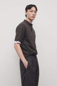 Short-sleeved polo top in lightweight melange cashmere with boxy fit, horn buttons, and ribbed collar, cuffs, and hem. Crafted from cashmere, linen, and silk, the breathable knit offers a tactile hand and relaxed, elegant feel. More information - 42% Cashmere, 36% Silk, 22% Linen - Made in Italy - Style: 1261Y876CHO