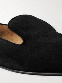 Undeniably smart, The Row's 'Brent' loafers are crafted from supple suede in versatile black. The notched vamp and especially low heels give them a sophisticated, slipper-like appearance. Size & Fit - Fits true to size. Take your normal size - European sizing Details & Care - Black suede