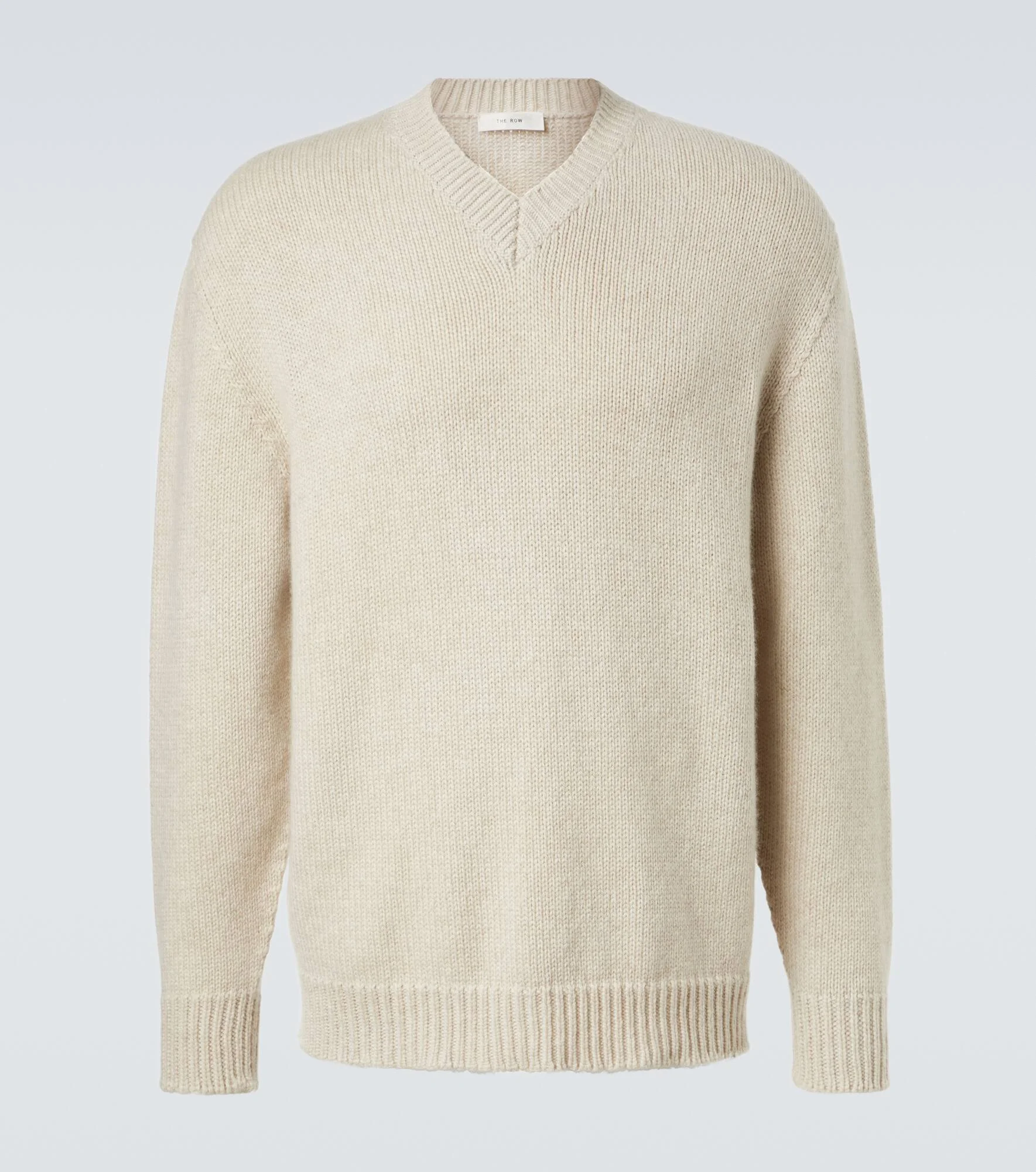 A deep affection for refined and timeless fashion influences The Row's dedication to craftsmanship and quality. Made in Italy from soft cashmere, the Creed sweater features a V-neckline and ribbed-knit trims. Product Details - Material: 100% cashmere - Care instructions: dry clean - Made in Italy - Designer color name: Fog - Item color: white - Collar: V-neck - Cuff: ribbed - Hem: ribbed - Item number: P01116488 Size & Fit - True to size - Dropped shoulders - Designed for a loose fit - Slightly stretchy fabric - Falls below the hip - The model in the picture is 185cm-6'1" and wearing a size L