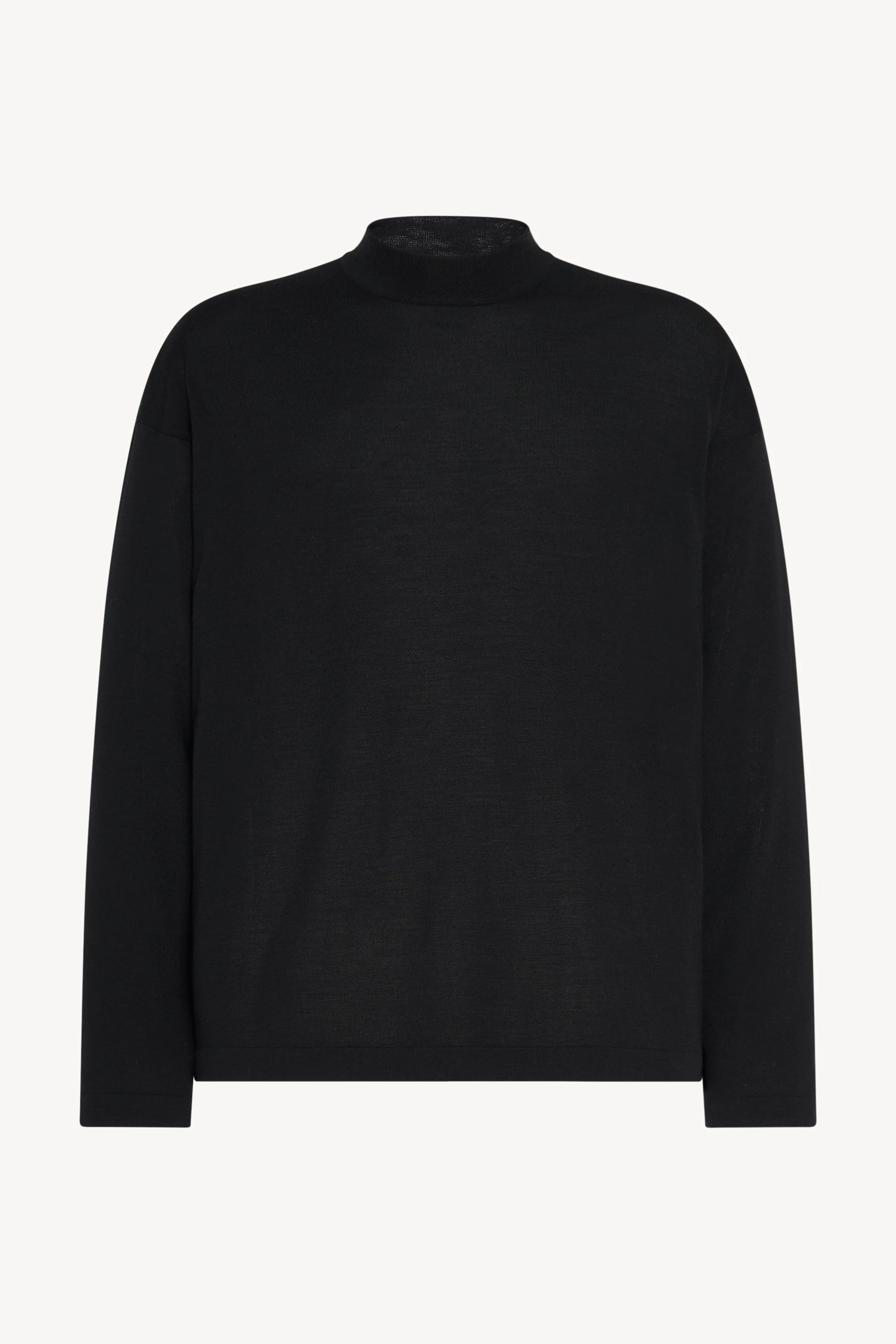 Long-sleeved mock neck top in extra fine wool with boxy fit, ribbed collar, and signature center back detail.More information - - 100% Wool - - Made in Italy - - Style: 267Y590BLK