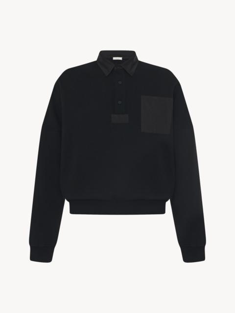 Oversized polo top in cashmere and cotton French terry with dropped shoulders, tonal cotton patch pocket, collar, and placket square, and ribbed cuffs and hem. More information - 84% Cotton, 16% Cashmere - Made in Italy - Style: 611K628WSP