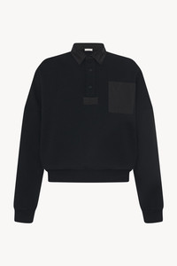 Oversized polo top in cashmere and cotton French terry with dropped shoulders, tonal cotton patch pocket, collar, and placket square, and ribbed cuffs and hem. More information - 84% Cotton, 16% Cashmere - Made in Italy - Style: 611K628BLK