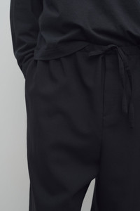 Relaxed wide leg pant in mohair and wool with side seam pockets, zipper fly, and elasticated waistband with drawstring closure. More information - 75% Wool, 25% Mohair - Made in Italy - Style: 657W3602BLK