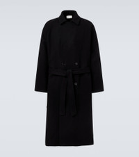 This Eomer wool coat by The Row is detailed with a double-breasted closure and a self-tie belt for a clean, defined silhouette. The piece is complete with a storm flap and a center vented seam at the back. Product Details - Material: 100% wool - Care instructions: dry clean - Made in Italy - Designer color name: Black - Item color: black - Lining: 100% silk - Closure: double-breasted (four buttons) - Pockets: side slit pockets - Vent: single - Detachable belt - Belt loops - Partially lined - Item number: P01116479 Size & Fit - True to size - Loose fit, comes with belt - Non-stretchy fabric - The model in the picture is 185cm-6'1" and wearing a size UK 40