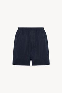 Knee length short in water-resistant technical poly with elasticated waistband, on-seam side pockets and back welt pockets. More information - 100% Polyester - Made in USA - Style: 280W2157NVY
