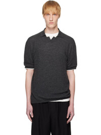 Knit goat cashmere polo. · Rib-knit open spread collar, hem, and cuffs · Dropped shoulders Supplier color: Charcoal 100% goat cashmere. Made in Italy 252359M212003