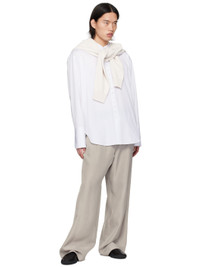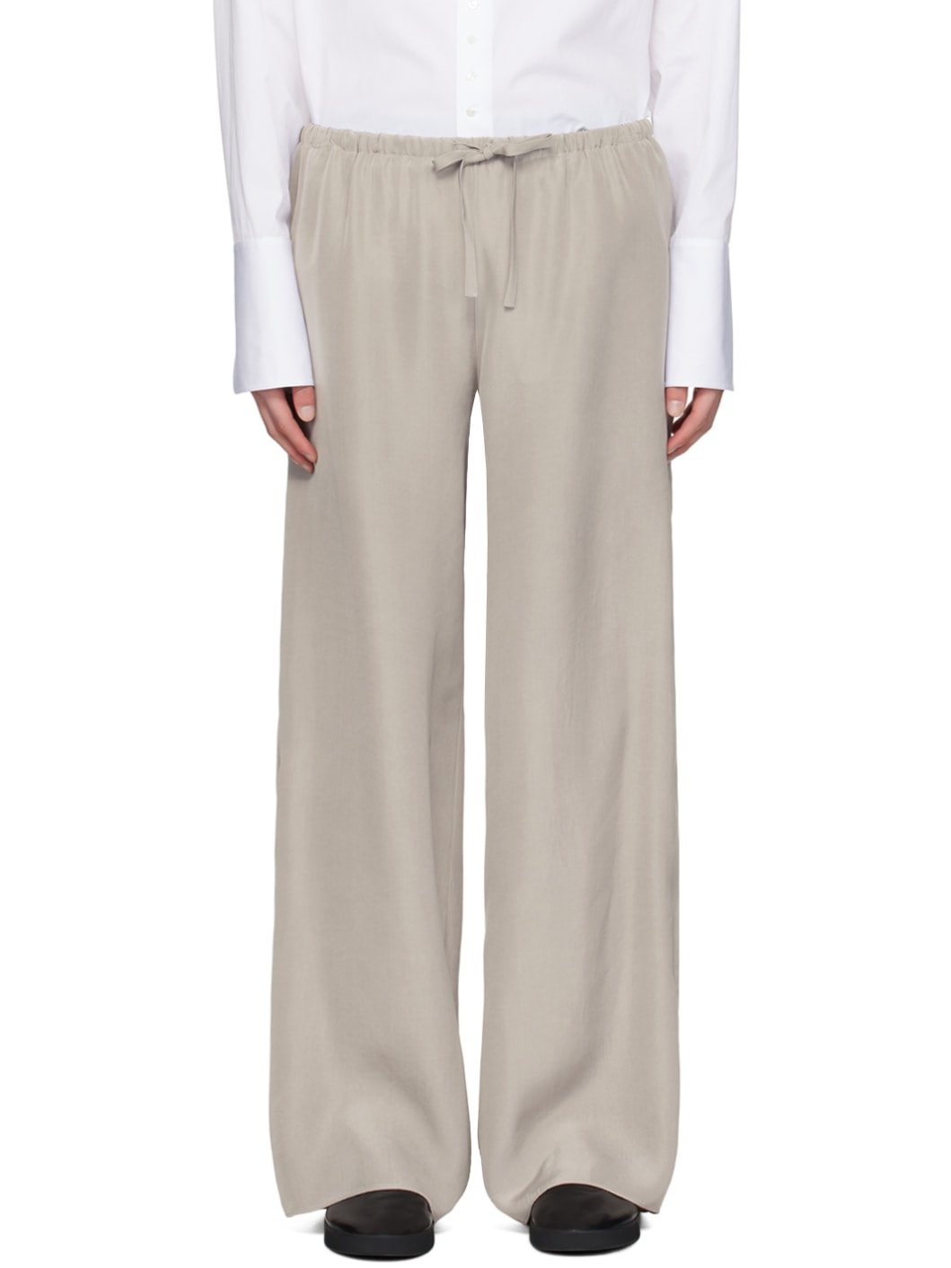 Relaxed-fit straight-leg silk twill trousers. · Gathering and drawstring at elasticized waistband · Two-pocket styling Supplier color: Snow