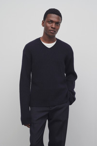 Boxy sweater in ribbed midweight cashmere with v-neckline. More information - 100% Cashmere - Made in Italy - Style: 713Y556DRN