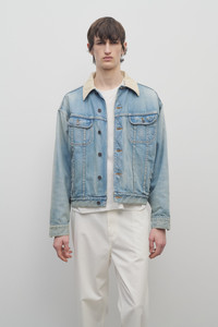 Classic denim jacket in lightweight indigo denim with corduroy collar, cotton flannel lining, front flap and welt pockets, and front button placket. More information - 100% Cotton - Lined in 100% Cotton - Made in Japan - Style: 952W3932LIN