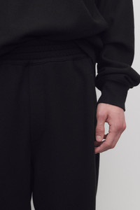 Relaxed pull-on pant in cotton and cashmere French terry with tapered hem, side seam pockets, and topstitched elastic waistband. More information - 84% Cotton, 16% Cashmere - Made in Italy - Style: 646K628BLK