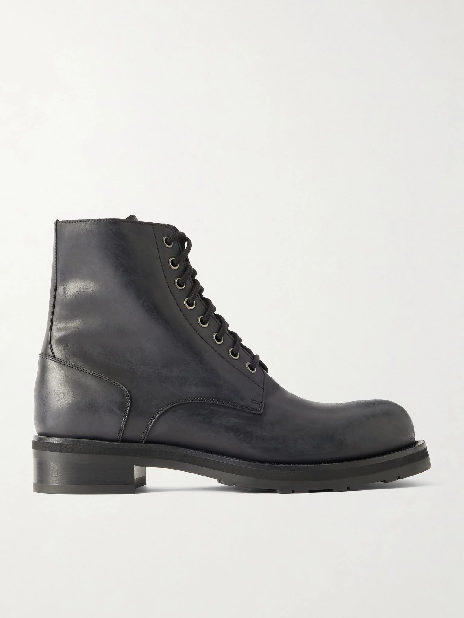 The Row's boots are made from supple leather that's artfully distressed for a lived-in appearance and oiled for enhanced shine. They have a military-inspired lace-up front and chunky rubber lug soles for ample grip. Size & Fit - Fits true to size. Take your normal size - European sizing Details & Care - Black leather (Cow) - Lace-up