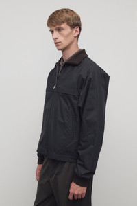 Collared jacket in crisp Japanese cotton gabardine with ribbed collar and cuffs, slant besom pockets, and front zipper closure. More information - 100% Cotton - Lined in 100% Cotton - Made in Italy - Style: 1180W4234FBK