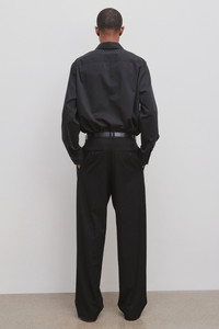 Mid-waisted pant in soft wool gabardine with double pleated front, side seam pockets, button-down back pockets and triangular coin pocket. More information - 100% Wool - Made In USA - Style: 282W1842BLK
