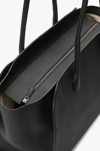 Softly structured tote bag in matte grained calfskin leather with tubular handles, gusseted side panels, and top zipper closure. More information - 17 x 7.5 x 12 in. - 100% Calfskin Leather - Lined in 100% Cotton - Made in France - Style: W1904ML133DRIS