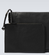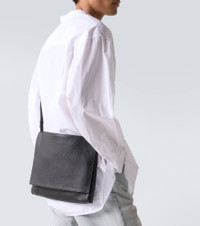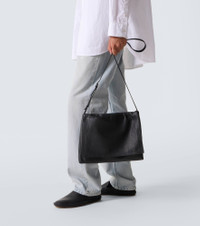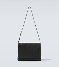 A deep affection for refined and timeless fashion influences The Row's dedication to craftsmanship and quality. Expertly crafted from soft leather, the Nan messenger bag features an overlapping front flap, an adjustable shoulder strap, and an internal zipped pouch. Product Details - Material: leather - Lining: leather - Made in Italy - Designer color name: Black Ans - Item color: black - Internal details: single compartment - Adjustable shoulder strap - Item number: P01047763 Size & Fit - Height 26cm-10" - Width 35cm-14" - Adjustable shoulder strap - Max. length shoulder strap 125cm-49" - Clutch height 16,5cm-6.5" - Clutch width 23cm-9"