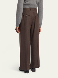 THE ROW tailored trousers in lightweight cashmere and silk flannel Regular rise Creased front and back Slanted side pockets Buttoned back flap pockets Relaxed fit through wide legs Full length Hidden buttonzip front; belt loops Cashmere/silk Made in Italy