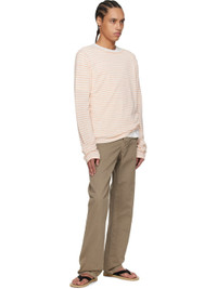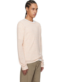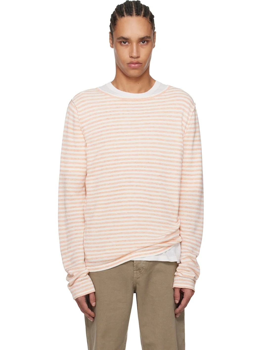 Knit linen- and cotton-blend sweater. Stripes throughout. - Rib-knit crewneck - Exposed seam at dropped shoulders Supplier color: Ecru/Salmon stripe